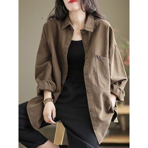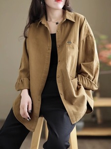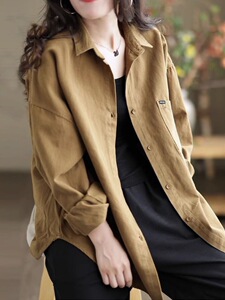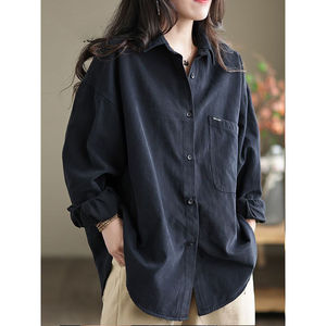 休闲纯棉衬衫外套女春秋新款韩版宽松复古黑色港味显瘦纯棉上衣