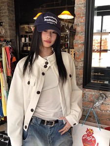 早秋新款韩系小众小个子爆款上衣白色皮衣女设计感宽松宽松短外套