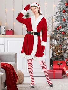 新款欧美圣诞节女款连衣裙服装圣诞制服ds派对角色扮演套装亚马逊