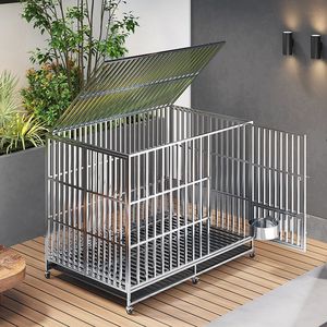 不锈钢狗笼大型犬狗笼子可折叠中型犬带厕所方管室内边牧宠物金毛