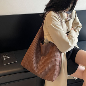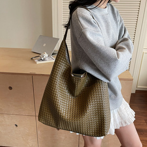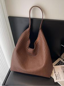 跨境爆款编织通勤大容量托特包女2025新款休闲百搭时尚单肩腋下包