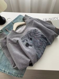高克重毛圈棉可爱卡通印花圆领套头卫衣女秋季新款日系宽松上衣