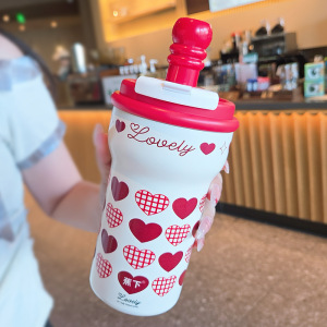 蕉下保温杯女生陶瓷内胆咖啡杯高颜值水杯果茶杯双饮便携吸管杯子