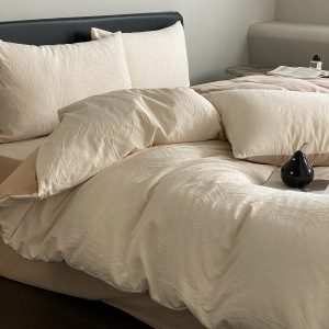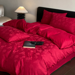 轻奢100支全棉磨毛厚织大提花四件套高级感小众风格全棉床单被套