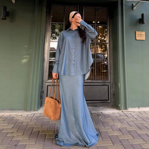 跨境外贸欧美女2025年秋新款衬衫领长袖外套收腰鱼尾长包臀连衣裙