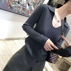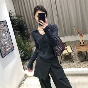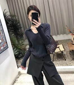 2025秋冬复古坑条羊毛针织衫女POLO衫短款翻领正肩U领打底上衣女