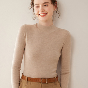 秋冬精仿薄款山羊绒针织打底衫女长袖半高领修身保暖显瘦毛衣内搭