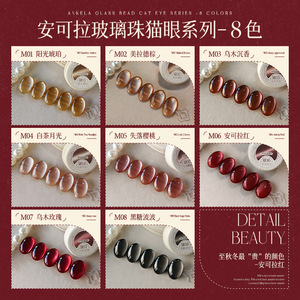 安可拉红玻璃珠美甲猫眼胶秋冬系列爆闪美拉德显白款琥珀色甲油胶