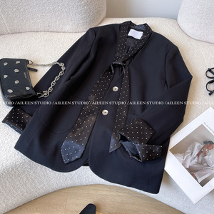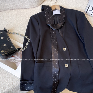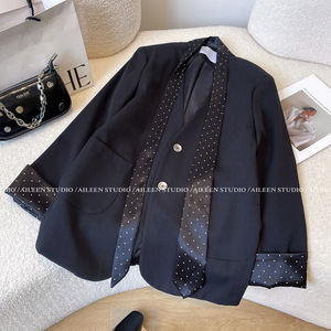 黑色西装外套女2025春装新款设计感小众拼接高级感气质小西服上衣