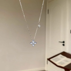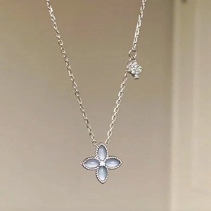 2025新款清冷感灰蓝色四叶草项链女轻奢精致百搭高级感小红书爆款