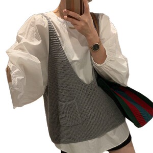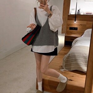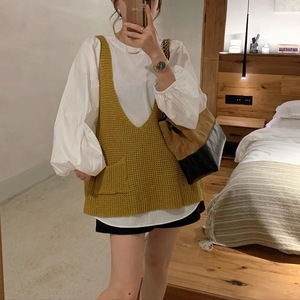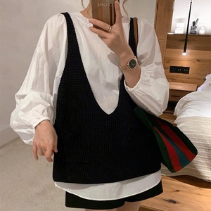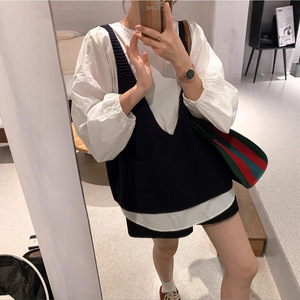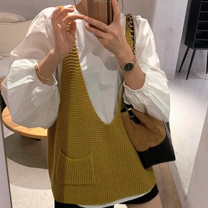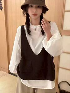 时尚休闲针织马甲女款2025秋冬季新款宽松慵懒风V领针织叠穿背心