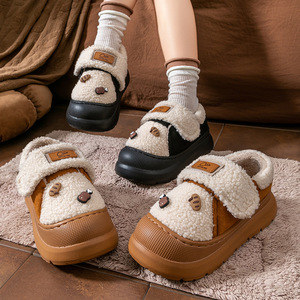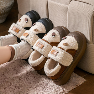 复古羊羔绒款包跟棉拖鞋女士秋冬季厚底加绒保暖外穿防滑雪地棉鞋