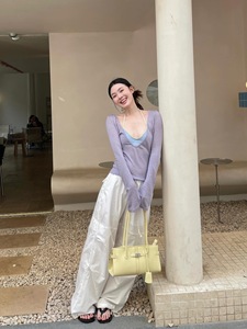 气质辣妹风大领口设计感紫色T恤女2025新款修身显瘦百搭长袖上衣