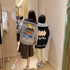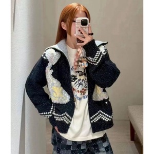 (现)南油高定25秋冬新款帆船垂钓刺绣撞色重工翻领拉链毛衣外套