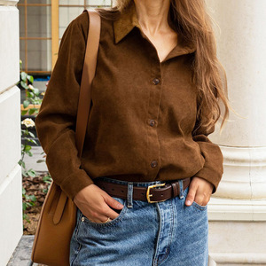 秋冬新品复古风棕色灯芯绒长袖衬衫女设计感气质时尚2025跨境通勤