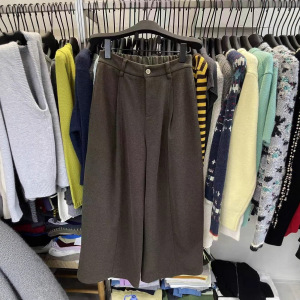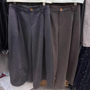 韩系高腰拼色高级感阔腿裤直筒裤女2025新款宽松百搭气质休闲裤子