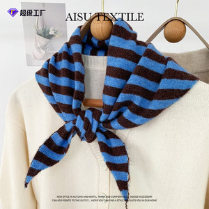 新款韩系百搭经典条纹小众三角巾女冬时髦针织围脖包头巾搭肩