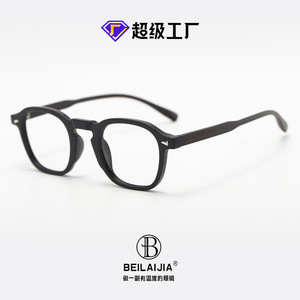 磨砂质感装饰镜男旅行者款粗框木纹腿眼镜复古茶色时髦街拍平光镜