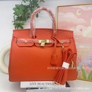 跨境百搭铂金包时尚简约轻奢荔枝纹手提包质感通勤女士bags单肩包