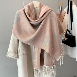 2025年新款双面高级感保暖披肩秋冬百搭字母围脖轻奢小香山茶花新