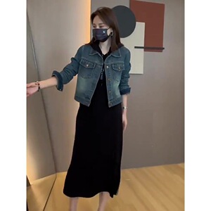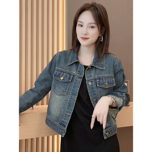 2025年秋季新款复古显瘦牛仔外套女百搭POLO领长袖夹克短款上衣潮