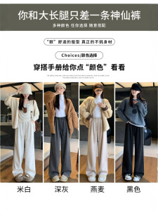 白色阔腿裤女裤子秋季2025新款软糯垂感直筒休闲小个子窄版糯米裤