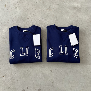 正确版本原标CEL家海军蓝胸前字母镂空植绒印花套头毛圈卫衣男女
