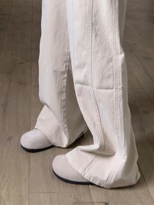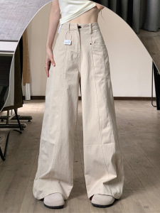 杏色工装牛仔裤女春秋季慵懒松弛感高腰直筒显瘦弯刀镰刀阔腿裤子