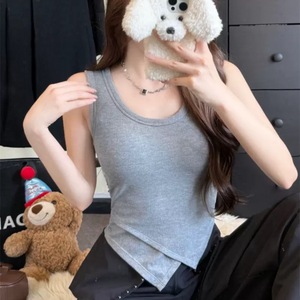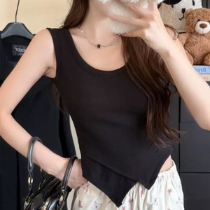 秋冬新款磨毛宽背带背心内搭修身显瘦不规则下摆固定杯短款