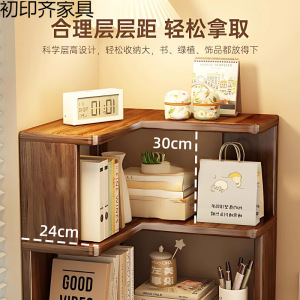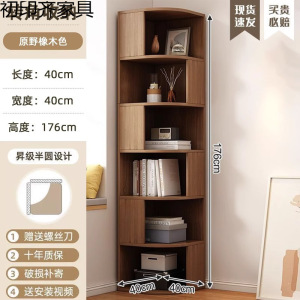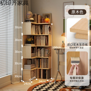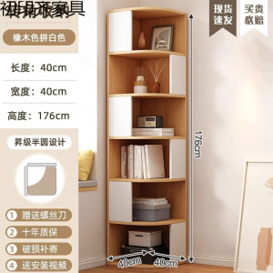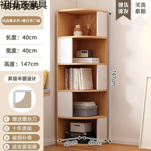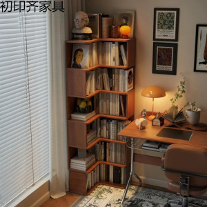 中古风转角书架置物架窄柜客厅书柜落地靠墙储物柜一体创意转角柜