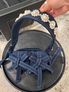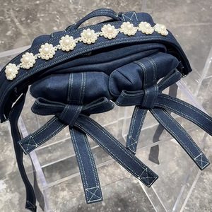 2025新款牛仔包包女珍珠手提包通勤百搭单肩包斜挎包蝴蝶结腋下包
