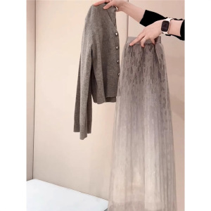 深圳南油老钱风高级感套装女2025秋季新款灰色针织衫半身裙两件套