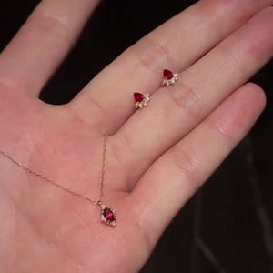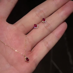 个性简约红色水滴吊坠项链小众设计感气质个性精致复古百搭项链