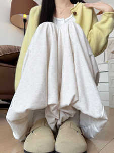 白色花苞裙裤女2025新款秋季高腰显瘦垂坠感软糯休闲灯笼糯米裤子