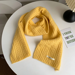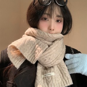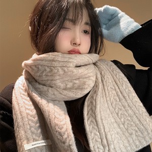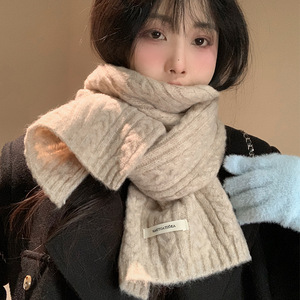 新款含羊毛麻花辫针织围巾女冬季韩系高级感保暖防寒护颈围脖男潮