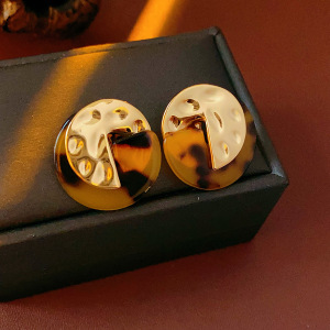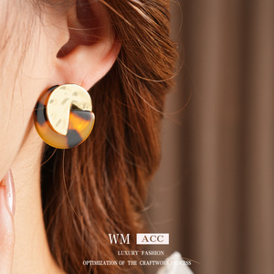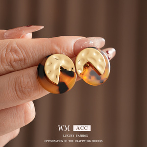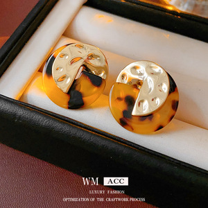 欧美银针树脂圆形豹纹耳环复古美拉德百搭耳钉小众高级感夸张耳饰