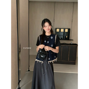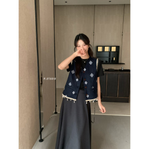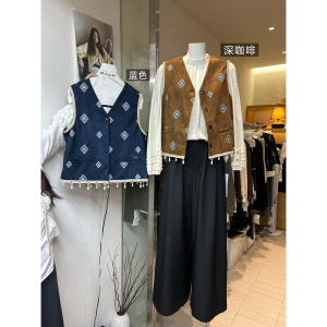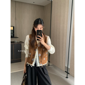 MSTUDIO漫莎-珠织带撞色蓝调旅行民族风刺绣流珠织带撞色马甲6001