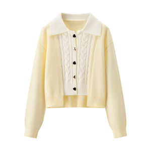 2025秋季新款时尚百搭设计香风撞色优雅假两件爱心扣针织开衫女