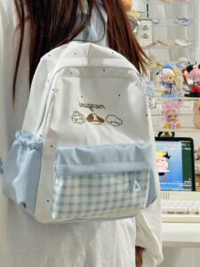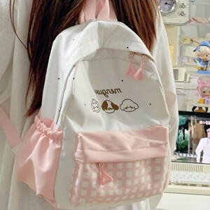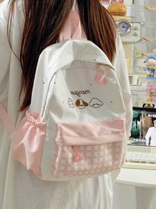新款韩系ins风多巴胺设计感双肩包百搭格子波点小狗背包小众书包