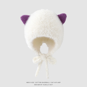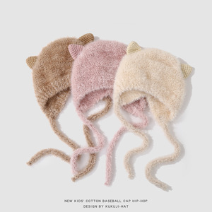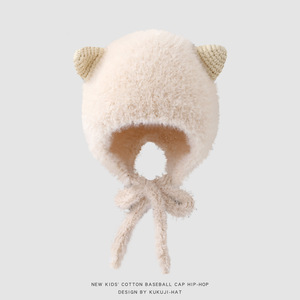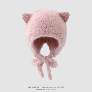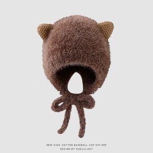 宝宝帽子秋冬季保暖加厚针织护耳毛绒帽男女儿童可爱卡通毛线帽潮
