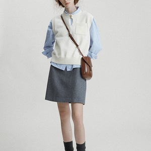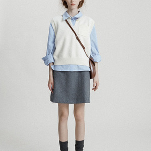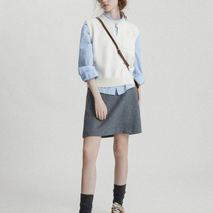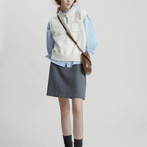 Vega Chic秋冬设计款两色小v领钉扣口袋两色针织马甲背心秋款