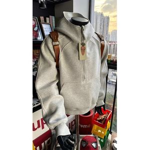 2025秋冬新款男装美式重磅宽松结构拉链设计防风高领连帽卫衣外套
