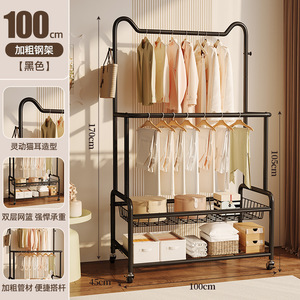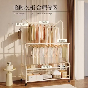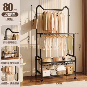 挂衣架落地家用晾衣服杆衣帽架卧室简易衣架可移动室内收纳置物架