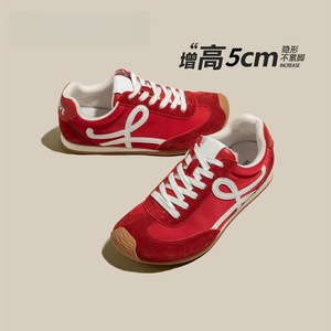 5CM内增高~红色厚底德训鞋女款徒步阿甘鞋夏季板鞋薄款透气运动鞋