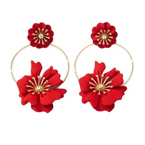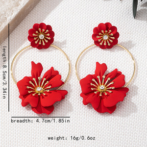 欧美跨境热卖时尚潮流花朵耳环女小众个性夸张设计感镶钻花瓣耳钉