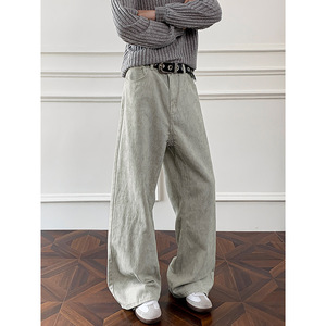 做旧脏灰色直筒潮流百搭宽松长裤拖地牛仔裤男N5313-特P42控78