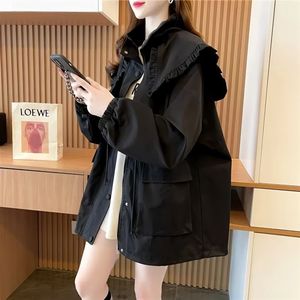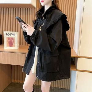 中长款海军领外套2025春秋季新款女士chic宽松设计感炸街风衣上衣