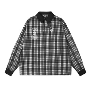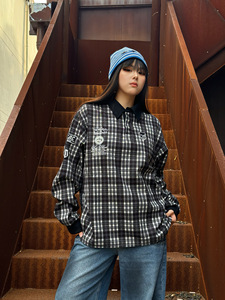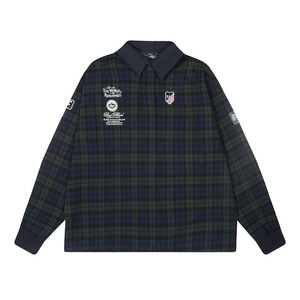 Badblood格纹刺绣字母徽标翻领球衣风长袖卫衣休闲宽松美式上衣