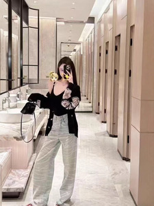 高品质~小香风新款V领卡通娃娃刺绣针织开衫宽松显瘦羊毛上衣女款