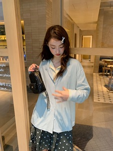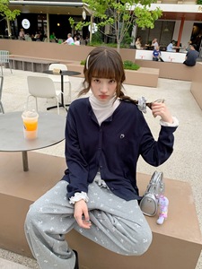你好卡农 慵懒风撞色刺绣圆领针织薄开衫女秋季气质显瘦休闲上衣
